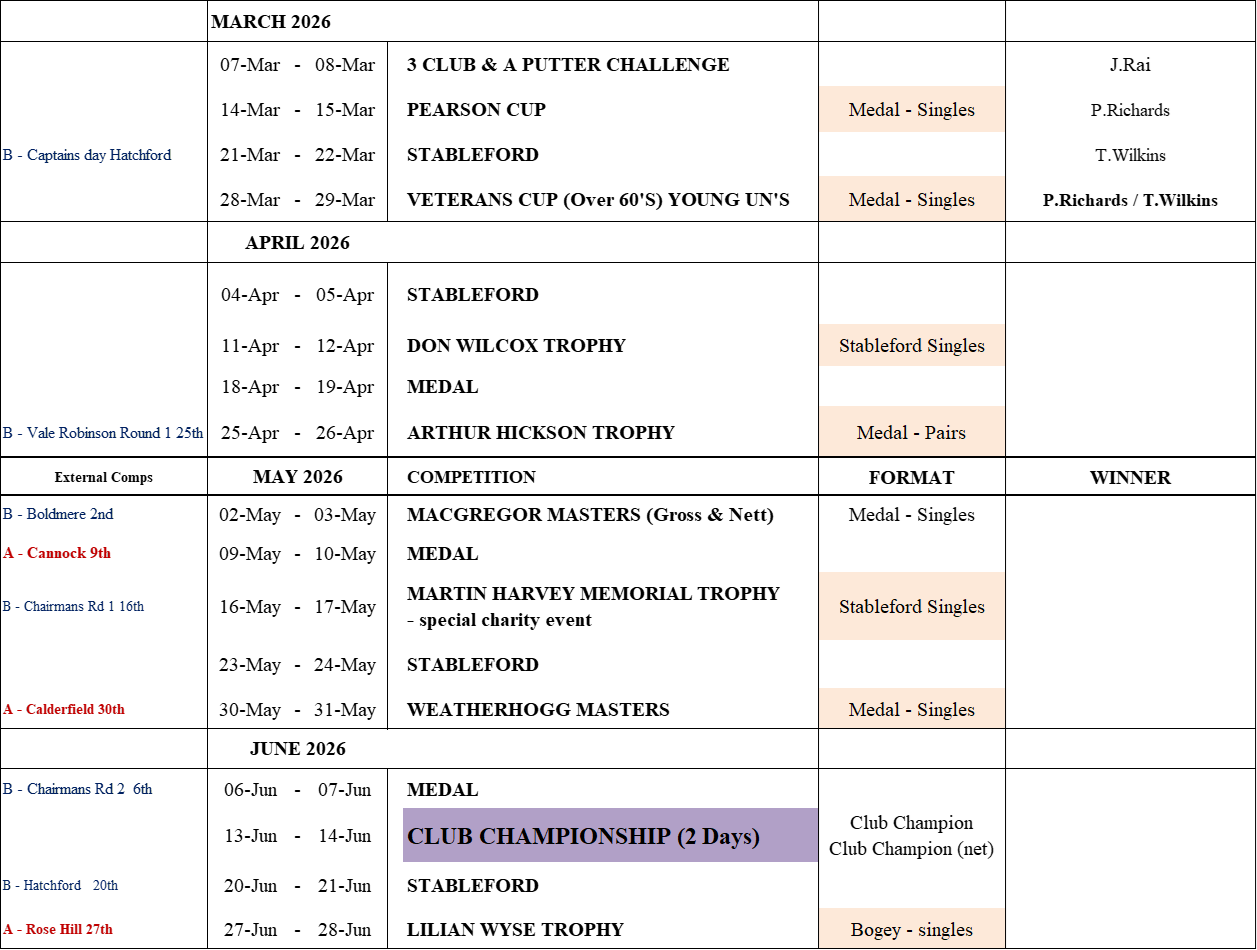 SEE THE 2025/26 FIXTURES SEE THE 2025/26 FIXTURES SEE THE 2025/26 FIXTURES 2025/26 FIXTURES As at 1st April 2026CLICK ON HERE Final fixtures spreadsheet Click here for the 2024/25 full seasons WINNERS CAPTAINS CUP RULES