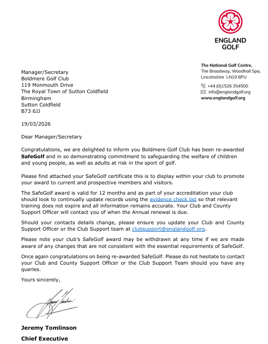 Boldmere Golf Club Rules &Policies